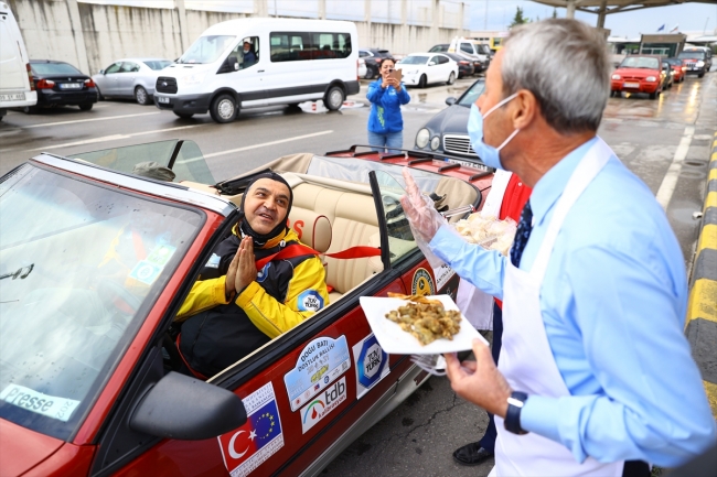 Dışişleri Bakan Yardımcısı Kaymakcı'nın da sürücü koltuğuna geçerek katıldığı ralli ekibine sınır kapısı çıkışında kentin meşhur lezzetleri ikram edildi.