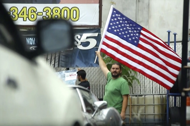 Yıldırım’ın Türk çalışanı daha sonra ABD bayrağını eline alarak coşkuyla sallıyor.
