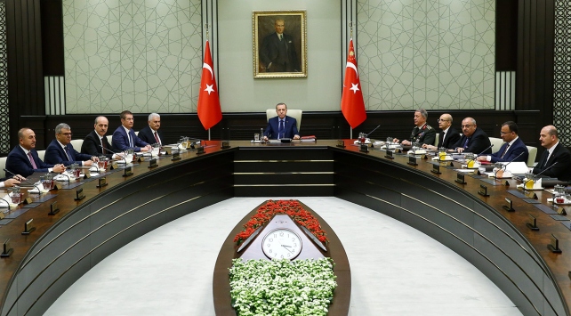 Cumhurbaşkanlığı Külliyesi'ndeki toplantının ardından yayımlanan bildiride, Türkiye'nin milli güvenliğine yönelik her türlü risk ve tehdide karşı hukuk çerçevesinde alınan tedbirlerin, FETÖ/PDY, PKK/PYD-YPG ve DEAŞ başta olmak üzere, terör örgütlerine karşı yürütülen mücadele ile dönem içinde düzenlenen terör eylemlerinin toplantıda kapsamlı bir şekilde görüşüldüğü kaydedildi.