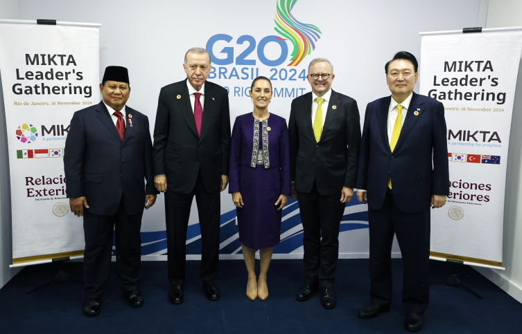 Cumhurbaşkanı Erdoğan, zirve kapsamında, Meksika, Endonezya, Güney Kore, Türkiye ve Avustralya arasındaki gayriresmi istişare ve eş güdüm platformu MIKTA'nın liderleriyle bir araya geldi.