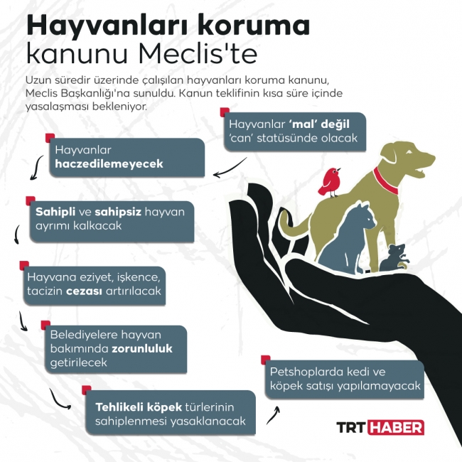 Büyükşehire bağlı ilçe belediyeleri de bakımevi kurma zorunluluğuna dahil edildi. Teklif ile hayvanlar ‘mal’ değil ‘can’ olarak tanımlanacak.