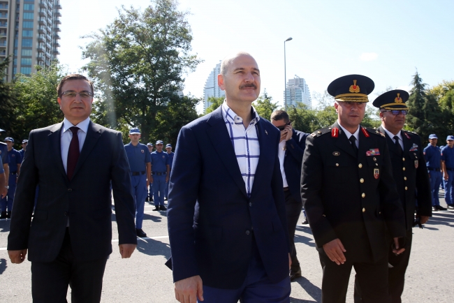 Buradaki törende jandarma personeliyle bayramlaşan Soylu, Tuğgeneral Nuh Köroğlu'ndan brifing aldı.