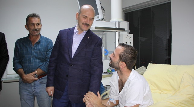 Soylu, polis memuruna geçmiş olsun dileklerini ileterek, "Çok iyi görünüyorsun. İlk gördüğümüz zamandan farklı bir durumdasın. Allah bağışladı." ifadesini kullandı.