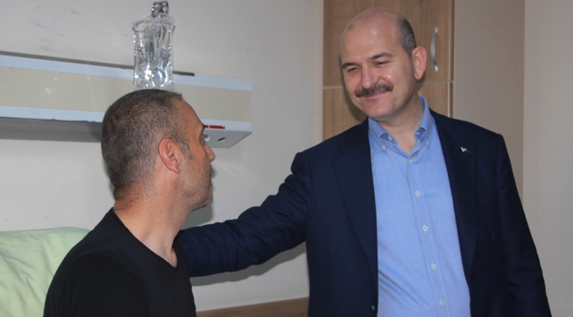 İçişleri Bakanı Süleyman Soylu, programını takip eden konvoydaki kazada yaralanan polisleri hastanede ziyaret etti.