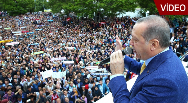 Cumhurbaşkanı Erdoğan, kongre salonu dışında toplanan kalabalığı selamladı, "998 gün sonra beraberiz" dedi.