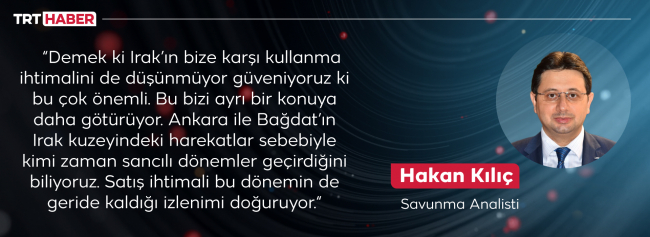 Kılıç, bu noktada Irak dışında güven duyulup satış yapılabilecek bir komşumuzun en azından şimdilik olmadığı görüşünde. Satışın gerçekleşmesi halinde süreci Irak’ın bu araçları bize karşı kullanmayacağını düşünecek kadar ilişkimizin düzeldiğini veya güvendiğimizin de göstergesi olarak yorumlamanın mümkün olduğunu söylüyor.