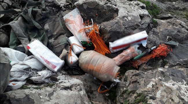 Mağarada yapılan aramada, 500 kilo tuz, 10 kilo sumak, 6 çuval çay, 1 ton şeker, 250 kilo bulgur, bin paket makarna, 30 çuval un, 250 litre sıvı yağ, 50 teneke peynir, 20 teneke zeytin, 800 kutu helva, 100 teneke salça, 15 jelikan mazot, 10 takım beyaz kar kıyafeti, 10 şemsiye, 3 hilti, 50 lamba, eski fotoğraf makinası, 8 gaz maskesi, telsiz düzeneği, 400 fünye, 2 sıhhi çanta, 1 uydu alıcısı, televizyon, 100 CD, 2 çuval örgütsel doküman, 5 çuval kadın pedi, 4 tüp, 300 metre kablo, 4 akü ve mühimmat bulundu. Ele geçirilen malzemeler, söz konusu bölgede imha edildi.