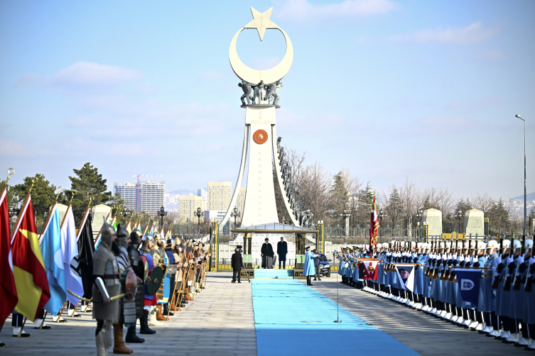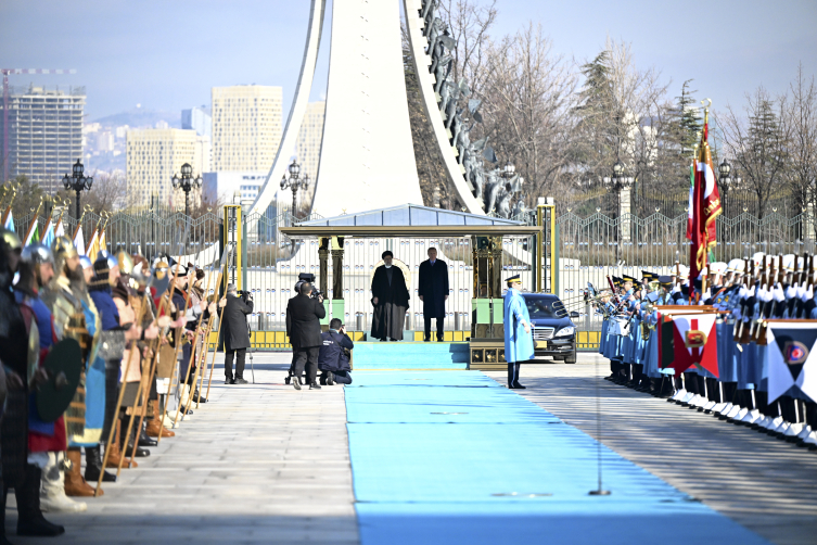 Erdoğan ve Reisi'nin tören alanındaki yerlerini almalarının ardından, 21 pare top atışı eşliğinde İstiklal Marşı ile İran milli marşı çalındı. Reisi, Muhafız Alayı Tören Kıtası'nı "Merhaba asker" diyerek Türkçe selamladı.