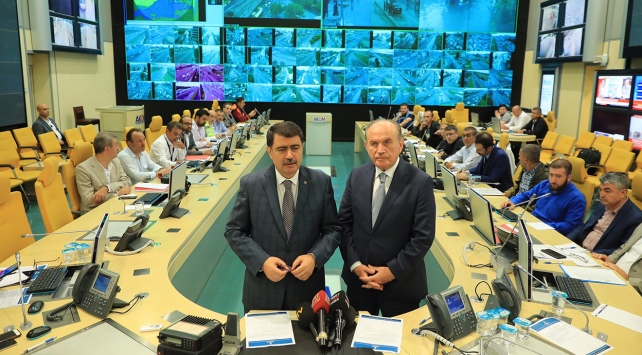 İstanbul'da yoğun yağış nedeniyle yaşanan son gelişmeleri, İstanbul Valisi Vasip Şahin ve İstanbul Büyükşehir Belediye Başkanı Kadir Topbaş İstanbul Büyükşehir Belediyesi Afet Koordinasyon Merkezi'nde (AKOM) düzenlenen basın toplantısında değerlendirdi.