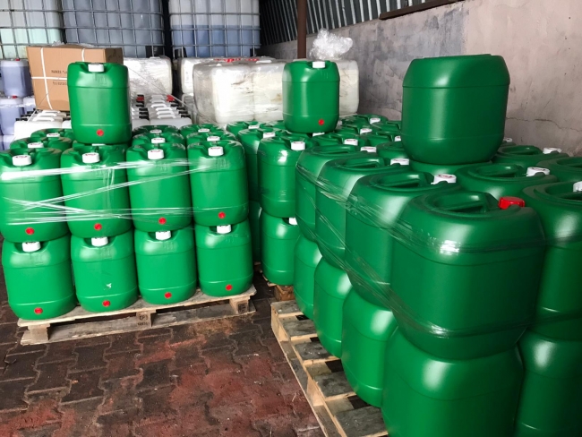 [Polis ekipleri ve İlçe Sağlık Müdürlüğü ekiplerinin iş yerindeki incelemesi sürüyor. Fotoğraf: DHA]Arnavutköy İlçe Tarım Müdürlüğü ekipleriyle birlikte harekete geçen Güvenlik Şube ekipleri, üretimin yapıldığı binaya baskın düzenledi. İş yerinde yapılan incelemelerde üretim ve satış izni olmayan 5 litrelik bidonlara doldurulmuş toplam 460 adet el dezenfektanı tespit edildi. 2 bin 300 litre el dezenfektanına el koyan ekipler, ele geçirilen el dezenfektanlarını yediemin otoparkına götürdü.