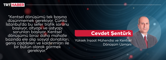 Yüksek İnşaat Mühendisi ve Kentsel Dönüşüm Uzmanı Cevdet Şentürk’e İstanbul’daki kentsel dönüşümü yavaşlatan etmenleri sorduk. Şentürk’e göre İstanbul’da arsalar çok kıymetli, parseller çok küçük, eski binalar da çok iç içe… Bunlara bir de kat malikleri arasında çıkan anlaşmazlıklar eklenince iş çıkmaza giriyor. Şentürk bu konuda devlet desteğini vurgulayarak vatandaşların da fedakarlık yapması gerektiğini vurguluyor: