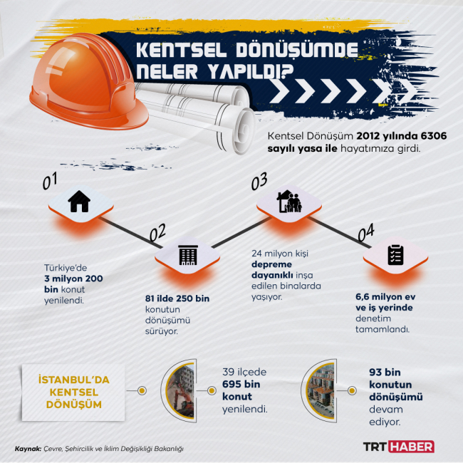 15 milyondan fazla kişinin yaşadığı İstanbul kentsel dönüşüm çalışmalarının odak noktası oldu. 39 ilçede 695 bin konut yenilendi. 93 bin konutun dönüşümü ise devam ediyor. Ancak İstanbul için daha alınacak çok yol var.