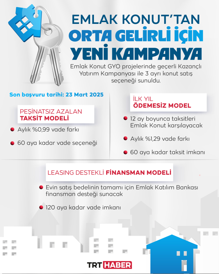 Biz de Emlak Konut olarak, gayrimenkul sektörüne katkı sağlamak ve farklı gelir gruplarına hitap etmek amacıyla 'Kazançlı Yatırım Kampanyası'nı başlatıyoruz. Kampanyamız kapsamında, 25 farklı projemizde ev sahibi olmak isteyenler için cazip fırsatlar sunuyor, sektöre ivme kazandırıyoruz."