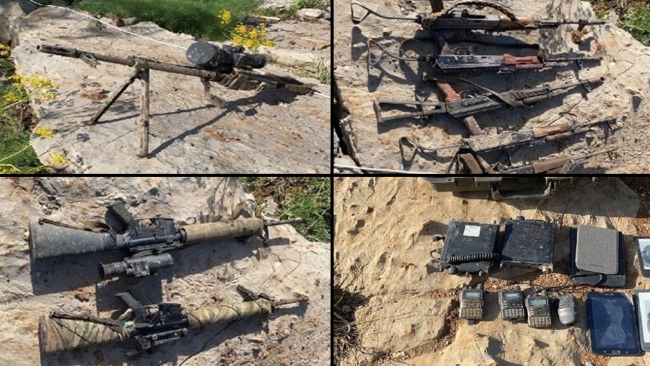 Ele geçirilen silah ve mühimmat ise şöyle; 1’i uzaktan kumandalı olmak üzere 2 adet 14,7 mm doçka uçaksavar silahı, 2 adet Zagros keskin nişancı silahı, 1 adet 7.62 mm PKMS makinalı tüfek, 1 adet Dragunov keskin nişancı tüfeği, 1 adet RPG-7 roketatar, 2 adet M-16 piyade tüfeği, 5 adet AK-47 piyade tüfeği, 1 adet tamburalı 6’lı bombaatar, tablet ve uçaksavar silahlarını uzaktan komuta ettiği değerlendirilen sistem, taarruz tipi el bombaları ve çok sayıda mühimmat ve doküman.