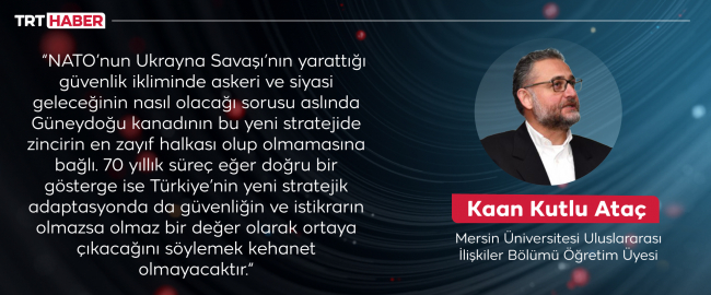 "NATO’nun özellikle gelecek ay Madrid zirvesinde kabul edilecek yeni stratejik konseptinde ittifakın değerleri ve amaçları kapsamında yeniden bir tanımlama yapılacak. NATO’nun Ukrayna Savaşı’nın yarattığı güvenlik ikliminde askeri ve siyasi geleceğinin nasıl olacağı sorusu aslında Güneydoğu kanadının bu yeni stratejide zincirin en zayıf halkası olup olmamasına bağlı.