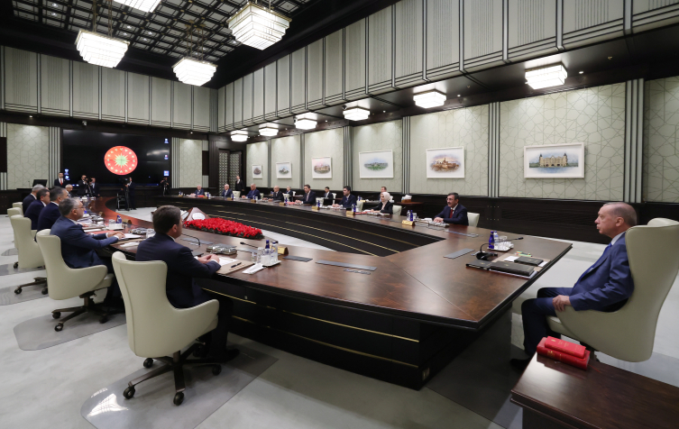 Cumhurbaşkanlığı Kabinesi, 3 haftalık aranın ardından saat 15.50'de Beştepe'de toplandı.