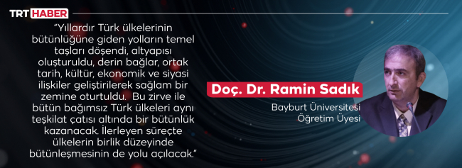 “Türk Devletleri Teşkilatı’nın temeli, Türkiye’nin girişimi ile 1992 yılında Türkçe Konuşan Ülkeler Zirvesi’yle atıldı. İlk yıllarda yani 2000 yılından önce, zirveler konusunda pek istenen verimin elde edildiğini söylemek mümkün olmuyor.” diyen Doç. Dr. Ramin Sadık, değerlendirmelerine şöyle devam ediyor.
