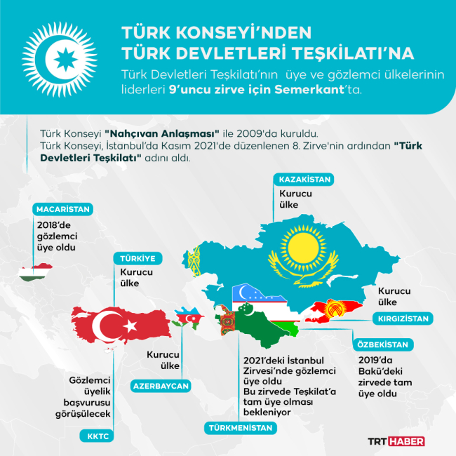 Konsey’in adının Türk Devletleri Teşkilatı olarak değişmesinin ardından birliğin, teşkilat olarak “ilk” zirvesi Özbekistan’ın Semerkant şehrinde düzenleniyor.