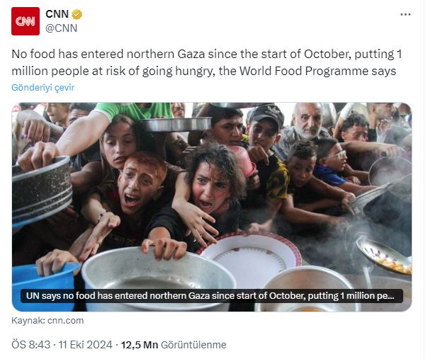 Başka bir kullanıcı ise "Yiyecek, Gazze'ye girmeyi reddediyor" sözleriyle CNN'in içeriğiyle dalga geçti.