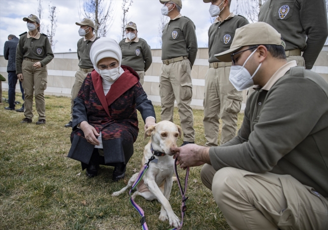 Leblebi'yi bir süre seven Emine Erdoğan, Çevre, Doğa ve Hayvanları Koruma Şube Müdürü Durmuş Genç'ten yapılan çalışmalarla ilgili bilgi aldı.