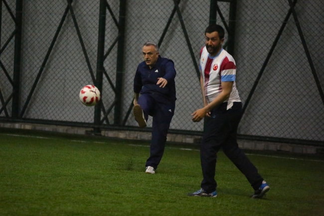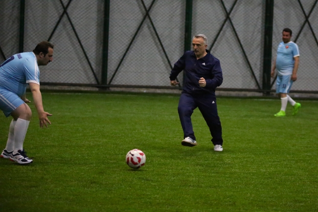 Bayburt Üniversitesi Baberti Külliyesi'ndeki halı sahada bürokratlar ve siyasetçilerin katılımıyla organize edilen maçta "sarı" ve "turkuaz" forma giyen takımlar mücadele etti.