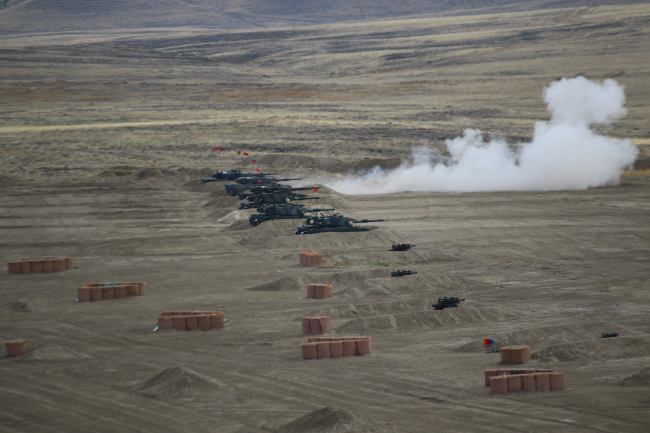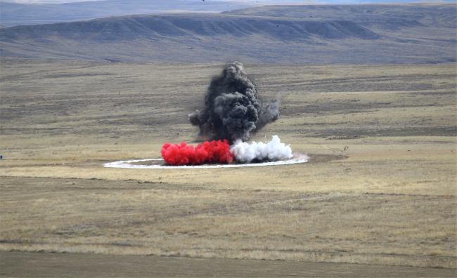 Faaliyet sahasındaki tankların, sis havanları kullanarak mevziler arasında gerçekleştirdiği hareketin ardından yaklaşık 5 bin metredeki hedefe Kornet tarafından "nokta atışı" yapıldı.