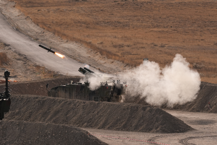 Faaliyet sahasındaki tankların, sis havanları kullanarak mevziler arasında gerçekleştirdiği hareketin ardından yaklaşık 5 bin metredeki hedefe Kornet tarafından "nokta atışı" yapıldı.