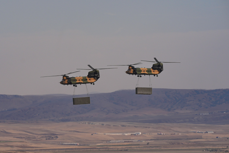 Fırtına obüslerinin hedeflerini "hedefte zaman" anlayışı ile tam isabetle vurması sonrasında "Skorsky" tipi helikopterler, topları ve CH-47 Chinook nakliye helikopterleri, mühimmat dolu konteynerleri alana taşıdı. Faaliyet sahasına havadan taşınan topların hedeflere yönelik yaptığı "görerek atışın" sonrasında obüslerce tesir atışı gerçekleştirildi.