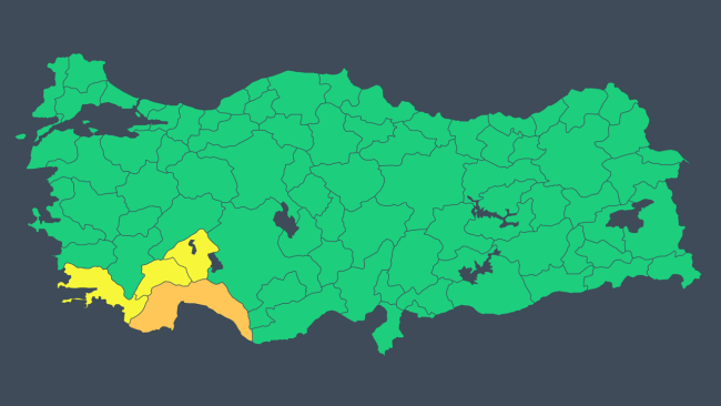 Meteoroloji Genel Müdürlüğü, Türkiye'nin güneybatısındaki 4 il için şiddetli yağış uyarısı yaptı.