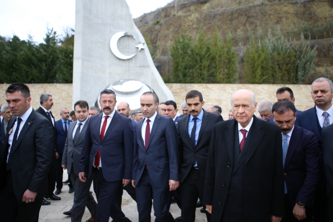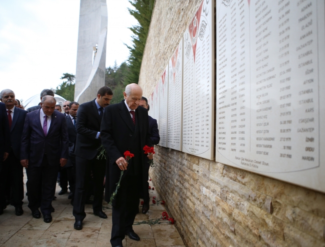 Anıtta Kur'anı Kerim tilavetinin ardından dua eden Bahçeli, sonrasında şehit isimlerinin yazılı olduğu alana karanfil bıraktı.