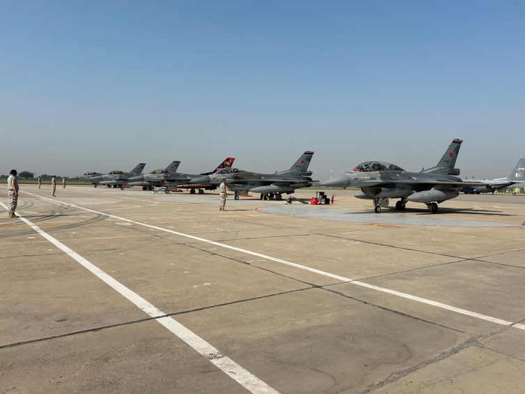 Milli Savunma Bakanlığı'nın (MSB) sosyal medya hesabından yapılan açıklamada, "8-26 Ekim'de Mushaf Hava Üssü/Sargodha'da Pakistan'ın ev sahipliğinde icra edilen Indus Shield-2024 Tatbikatı'na, 5'inci Ana Jet Üs Komutanlığına ait 5 F-16 uçağı ve 64 personelle katılıyoruz." ifadeleri kullanıldı.