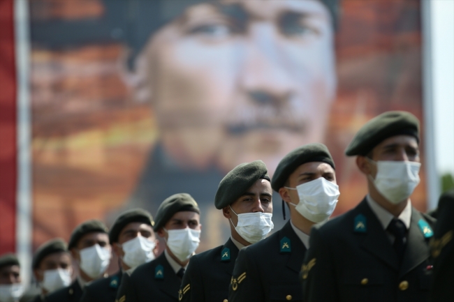 Okulun sancağının devir teslim töreni sonrası mezunlar, Kara Kuvvetleri Astsubay Meslek Yüksekokulu Marşı'nı söyledi. Programın ardından mezunlar, aileleriyle buluştu.