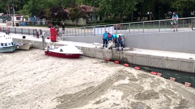 Dün Caddebostan Sahili'ne gelen ekipler, deniz salyasının bir noktada birikmesi için denize bariyer çekti, daha sonra müsilajları depolama tanklarına doldurdu. Tanklara doldurulan deniz salyalarının daha sonra bertaraf edileceği öğrenildi.