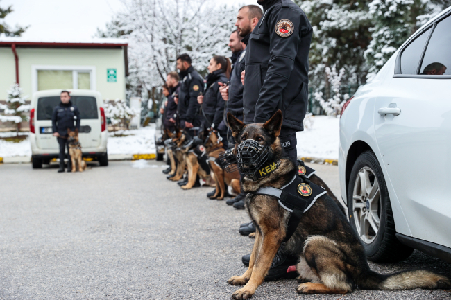 Suçluların yakalanması ve suç delillerinin bulunmasında aktif rol alan dedektör köpekler, Gölbaşı'ndaki Narkotik Suçlarla Mücadele Daire Başkanlığına bağlı Köpek Eğitim Merkezi (KEM) Şube Müdürlüğünde uzmanlar tarafından sıkı eğitimden geçiriliyor.