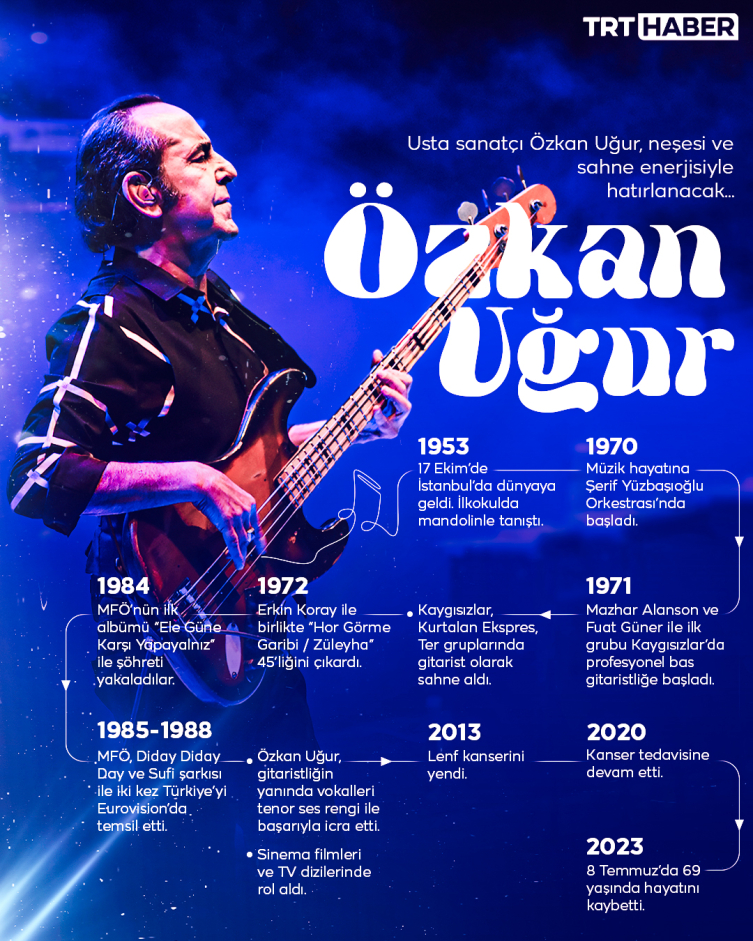 Özkan Uğur annemim 41 yıllık aşkı, hayat arkadaşı ve benim sevgili babam. Şimdi görüyoruz ki o çocuk, genç, yaşlı her görüşün her kesimin ve her takımın bizim tahminlerimizin üstünde kat ve kat sevgilisiymiş. Babam kim olduğuna hiç bakmadan tüm çevresine saçtığı iyiliği, neşesi, naifliği, çalışkanlığı ve yeteneğiyle gelmiş geçmiş çok nadir insanlardan biriydi. Herkesin birbiriyle iyi olmasını ister, küsleri barıştırır hiç kimsenin arkasından asla ama asla konuşmazdı. Babam adeta bu dünyaya sanatçı olsun diye ışınlanmış bir yetenekti. Babamın çok sevdiği MFÖ’sü ile birlikte Türkiye’nin müzik tarihine vurdukları damga nesiller boyu kalıcı olacaktır. Hayatını son yıllarda ilerleyen hastalığına rağmen doyasıya yaşadı. Eğlenmeye ve eğlendirmeye devam etti. Hastalığının son zamanlarında bile yüzünden gülümseme eksik olmadı. Ailesi olarak derin üzüntümüzü anlatmaya kelimeler yetmez. Zaman bizim için durdu. Boşlukta sürükleniyoruz adeta. Nur içinde yat canımızın içi...