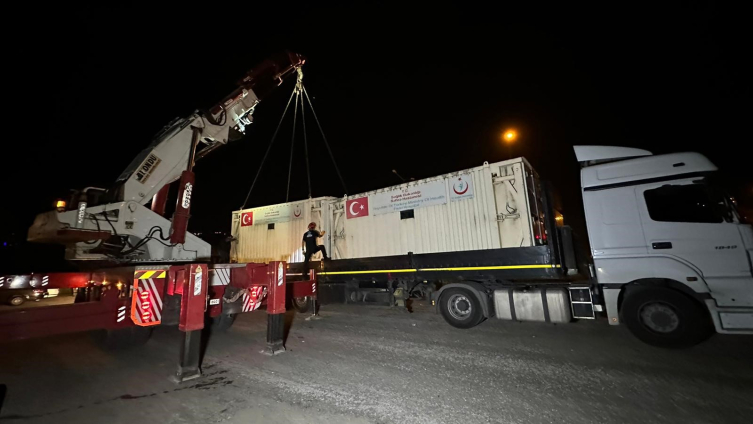 Tırlara yüklenen Sahra Hastanesi ve tıbbi malzemeler Gazze'ye ulaştırılmak üzere İzmir'e gönderildi.