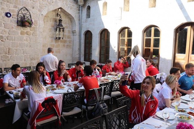 Antakya ilçesindeki bir çay bahçesinde buluşan ünlü isimler, burada Vali Yardımcısı Meral Batı Demirtaş tarafından karşılandı.