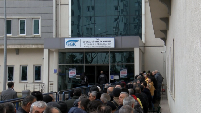 İşlemlerin e-Devlet üzerinden yapılabileceği uyarılarına rağmen vatandaşlar, çeşitli aksaklıklar yaşadıklarını belirterek SGK binaları önündeki bekleyişine devam ediyor.