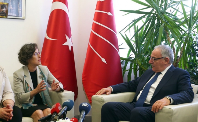 CHP'li heyette Genel Başkan Yardımcısı Lale Karabıyık ile Parti Meclisi üyeleri Yıldırım Kaya ve Bülent Kuşoğlu yer aldı.