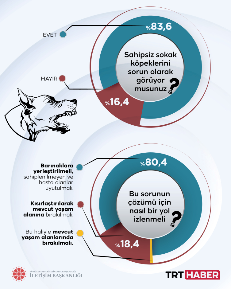 İletişim Başkanlığı, son yıllarda ülke gündeminde her daim kendine yer bulan sokak köpekleri konusunda 5 sorudan oluşan bir kamuoyu araştırması yaptı.