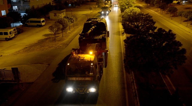 Çeşitli birliklerden gönderilen 5'i obüs yüklü tırdan oluşan 10 araçlık konvoy, jandarma eskortu eşliğinde Kilis'ten geçerek Gaziantep'in İslahiye ilçesinin Suriye sınır hattı istikametine doğru hareket etti.