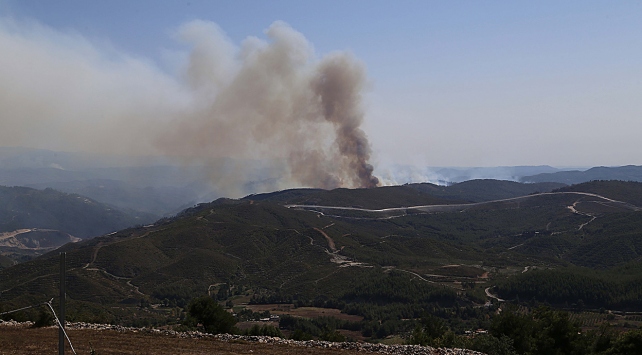 Bölgeden yükselen yoğun dumanlar Yayladağı ilçe merkezinden de görülüyor.