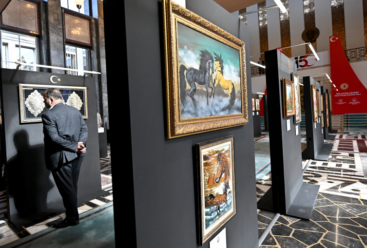 TBMM Şeref Holü'nde, 15 Temmuz Demokrasi ve Milli Birlik Günü dolayısıyla Aile ve Sosyal Hizmetler Bakanlığı tarafından hayata geçirilen proje kapsamında açılan sergi, 19 kategoride 155 eserden oluşuyor.