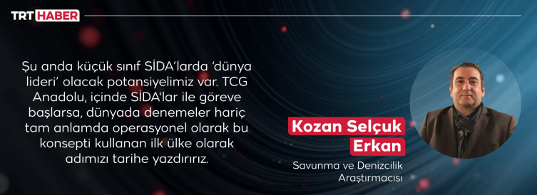 Şu anda küçük sınıf SİDA’larda ‘dünya lideri’ olacak potansiyelimiz var. TCG Anadolu, içinde SİDA'lar ile göreve başlarsa, dünyada denemeler hariç tam anlamda operasyonel olarak bu konsepti kullanan ilk ülke olarak adımızı tarihe yazdırırız.”