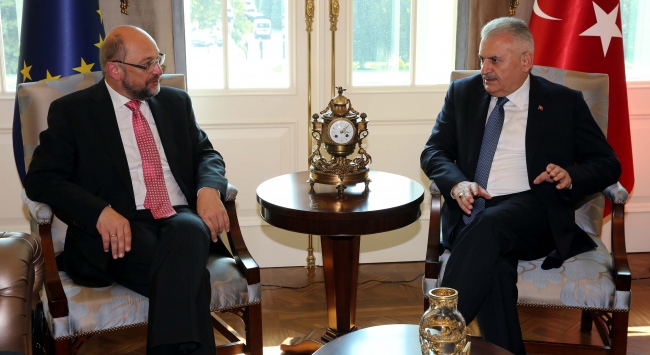 Yıldırım, Schulz’un Türkiye’ye 15 Temmuz hain darbe girişiminden sonra ilk ziyaretini gerçekleştirdiğine işaret ederek, kendisine darbe sonrası Avrupa Birliği’nden bekledikleri gür sesi duymadıklarını, bazı üyelerin bu konuda gereken açıklamayı gereken zamanda yapmadıklarını söylediğini ifade etti.