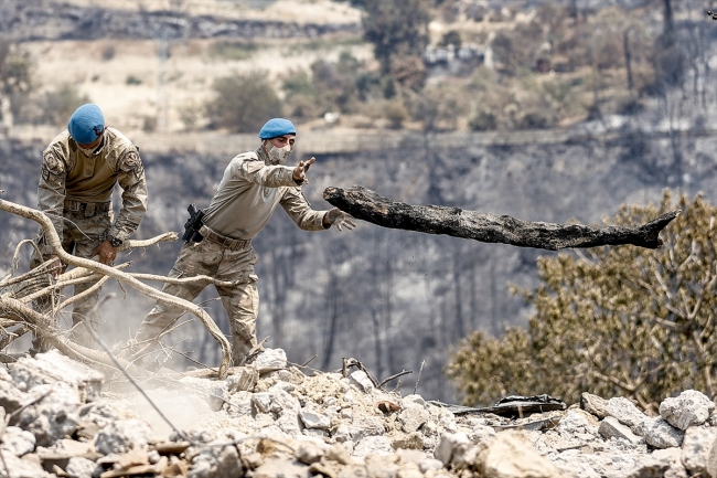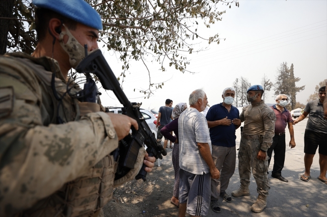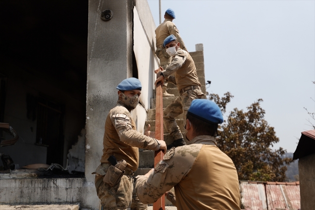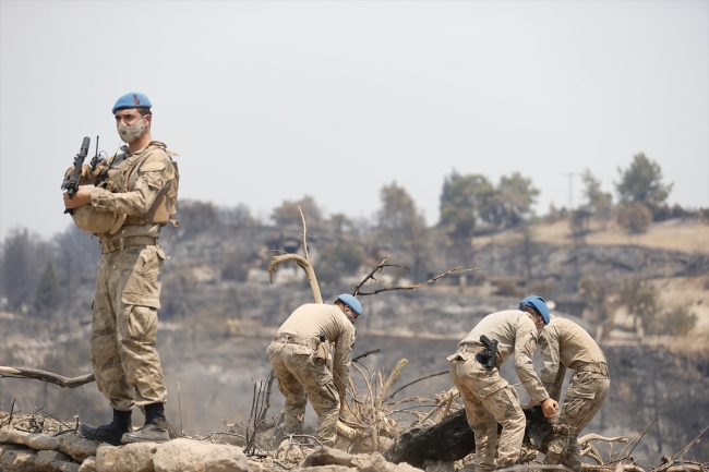 Türkiye'nin Suriye'de düzenlediği Fırat Kalkanı, Zeytin Dalı ve Barış Pınarı harekatlarında başarıyla görev yapan komandolar, Manavgat'ta yangınlardan etkilenen mahallelerde çalışmalara destek vermeye başladı.