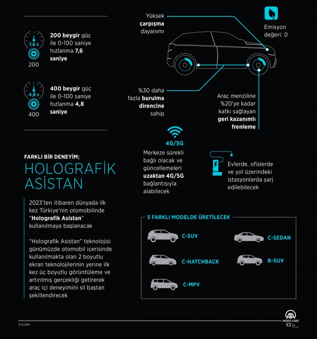İlk otomobil, 2022’nin sonunda üretim bandından indirilecek, 2023 yılında seri üretime başlanacak.
