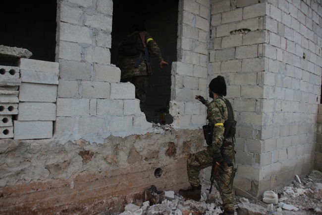 ÖSO unsurları belde merkezinin büyük bölümünü kontrollerine alırken, az sayıdaki noktada direnmeye çalışan kadın teröristlerle yer yer çatışmalar yaşanıyor.
