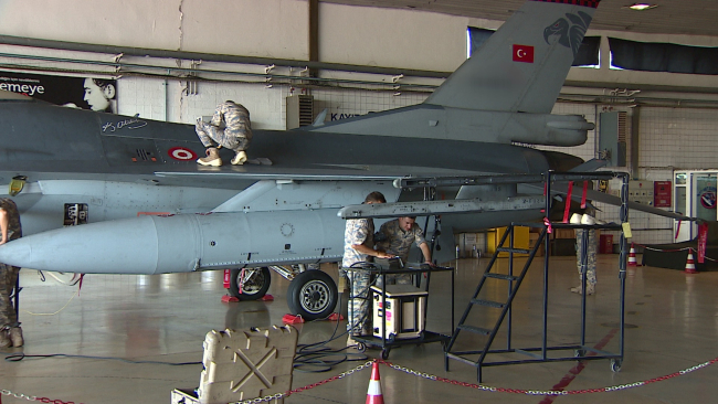 F-16 savaş uçaklarının bulunduğu her üs bölgesinde bakım hangarları bulunuyor. Bu hangarlarda uçuş öncesi ve sonrası bakımlar, kontroller ve testler yapılıyor. Arıza görüldüğü durumlarda incelemelerde bulunularak yerinde müdahale ediliyor. Bu faaliyetler sırasında yalnızca Türk Hava Kuvvetleri personeli görev yapıyor.