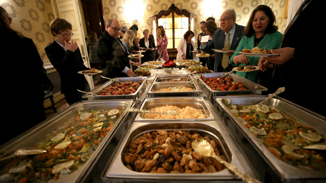 Büyükelçilik Aşçısı Turgay Holat'ın hazırladığı incirli yaprak sarma, zeytinyağlı enginar, balık pilaki, hünkar beğendi ve kabak tatlısı ikram edildi. Türkiye'nin Roma Büyükelçisi Ömer Gücük, konuklara "Asırlık Tariflerle Türk Mutfağı" kitabı hediye etti.
